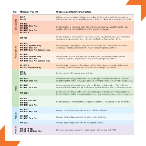 EPS stavební izolaci je možné rozdělit do 5 základních typů, podle místa použití: